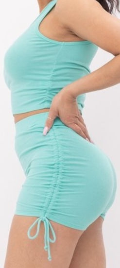 Cotton Spandex Side Elastic Shirring Crop Top